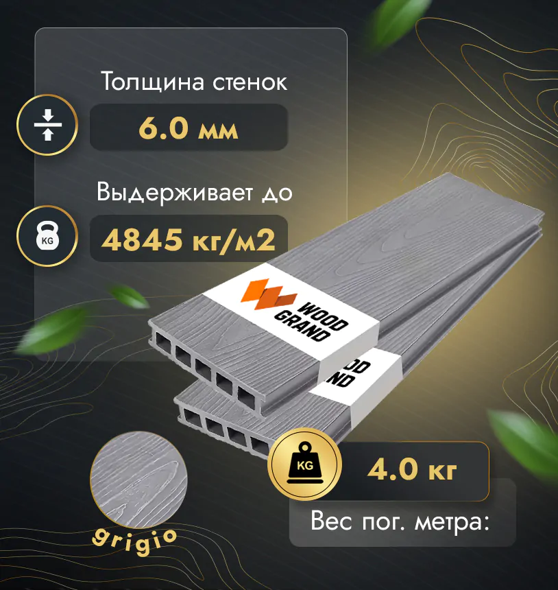 Террасная доска из МПК – это по-настоящему «каменная доска» - революционный материал в загородном строительстве. В основе доски из МПК - минеральная мука и связующие полимеры.